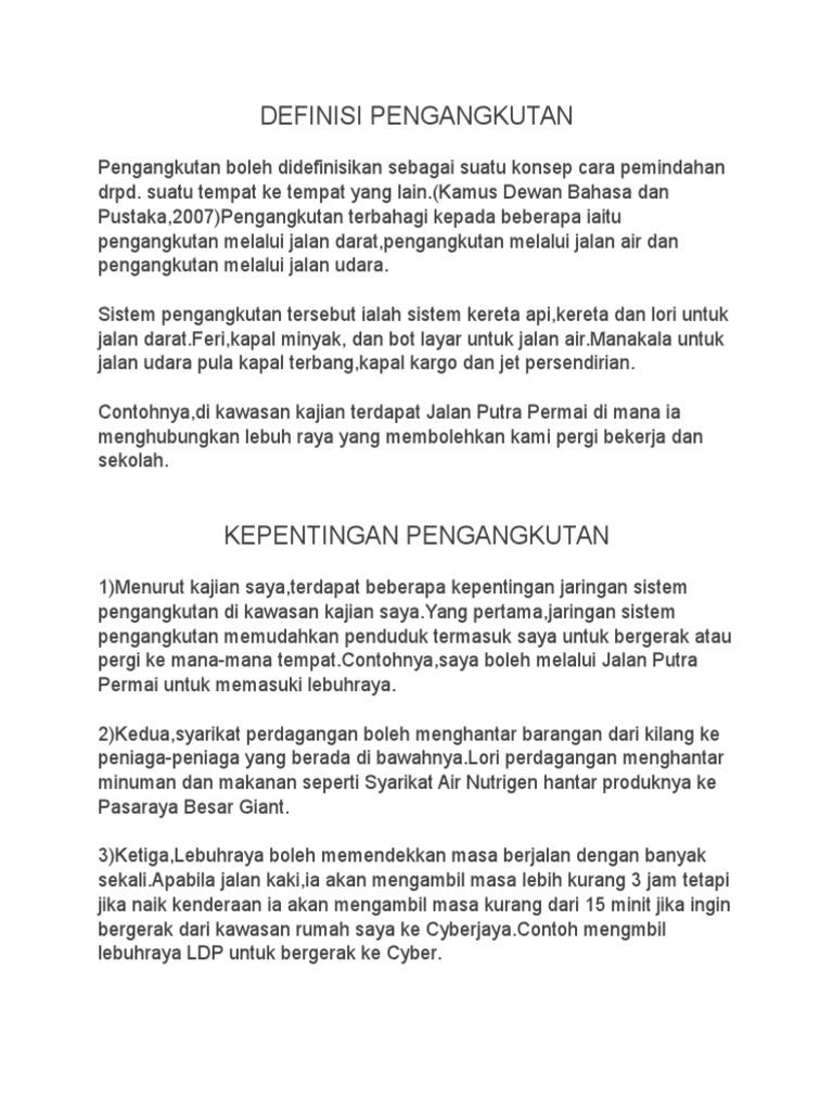 Pengangkutan dan Perhubungan Kesan Perkembangan Sistem Pengangkutan DaratAirUdara terhadap alam sekitar 2. Semoga perkongsian bahan-bahan rujukan panduan bahan pembelajaran dan pengajaran contoh-contoh karangan sumber rujukan tingkatan 1 tingkatan 2 tingkatan 3 dalam post di blog Bumi Gemilang berguna dan dapat membantu para pelajar dan. Suatu tempat ke tempat yang lain.